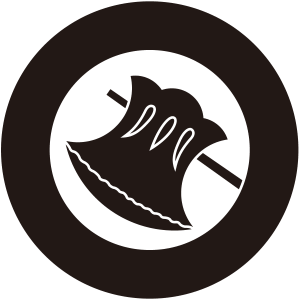 | 鉞は大型の斧のこと。鉞は古代中国の皇帝の権威の象徴であり、日本でも東国征伐に向かう日本武尊(ヤマトタケルノミコト)に天皇自ら鉞を授けたことが日本書紀に記されている。家紋としては尚武的な意義によるもの。 ちなみに鉞は魔除けとして表に三本、裏に四本の筋があり七つ目という。 |