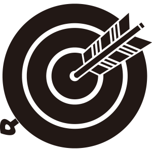 | 的は矢や鉄砲の射撃の訓練をする際の標的のこと。家紋となったのは流鏑馬に用いられる正方形の的で、主に名字に「的」や「矢」を含む氏が用いることが多い。また、屋が的に当たることを商売が当たることにかけて、瑞祥的な意義で家紋にした商家もあった。 |