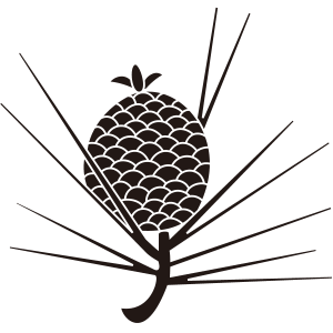 | 松紋とは、マツ科の針葉樹の高木である松の幹、枝、葉、及び松毬を紋章化した家紋。一年中青々とした葉をつける松は長寿の象徴とされ吉祥の瑞木として家紋として用いられた。また、苗字に因んで用いた氏も多い。松紋の形状、種類は極めて多いが、図案としては松を3段にした「三段階松」が多く使用されている。 |