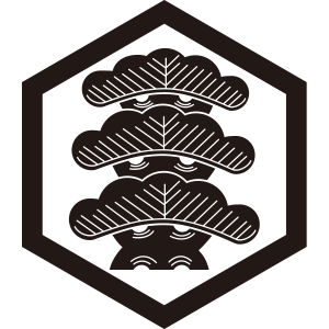 | 松紋とは、マツ科の針葉樹の高木である松の幹、枝、葉、及び松毬を紋章化した家紋。一年中青々とした葉をつける松は長寿の象徴とされ吉祥の瑞木として家紋として用いられた。また、苗字に因んで用いた氏も多い。松紋の形状、種類は極めて多いが、図案としては松を3段にした「三段階松」が多く使用されている。 |