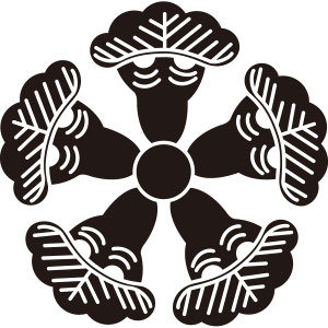 五つ松車紋は、5本の松を幹に車状につなげて描く。