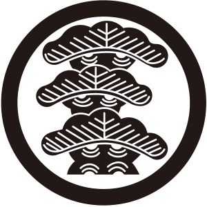 | 松紋とは、マツ科の針葉樹の高木である松の幹、枝、葉、及び松毬を紋章化した家紋。一年中青々とした葉をつける松は長寿の象徴とされ吉祥の瑞木として家紋として用いられた。また、苗字に因んで用いた氏も多い。松紋の形状、種類は極めて多いが、図案としては松を3段にした「三段階松」が多く使用されている。 |