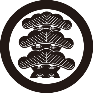 | 松紋とは、マツ科の針葉樹の高木である松の幹、枝、葉、及び松毬を紋章化した家紋。一年中青々とした葉をつける松は長寿の象徴とされ吉祥の瑞木として家紋として用いられた。また、苗字に因んで用いた氏も多い。松紋の形状、種類は極めて多いが、図案としては松を3段にした「三段階松」が多く使用されている。 |