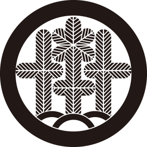 | 松紋とは、マツ科の針葉樹の高木である松の幹、枝、葉、及び松毬を紋章化した家紋。一年中青々とした葉をつける松は長寿の象徴とされ吉祥の瑞木として家紋として用いられた。また、苗字に因んで用いた氏も多い。松紋の形状、種類は極めて多いが、図案としては松を3段にした「三段階松」が多く使用されている。 |