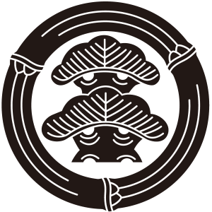 | 松紋とは、マツ科の針葉樹の高木である松の幹、枝、葉、及び松毬を紋章化した家紋。一年中青々とした葉をつける松は長寿の象徴とされ吉祥の瑞木として家紋として用いられた。また、苗字に因んで用いた氏も多い。松紋の形状、種類は極めて多いが、図案としては松を3段にした「三段階松」が多く使用されている。 |