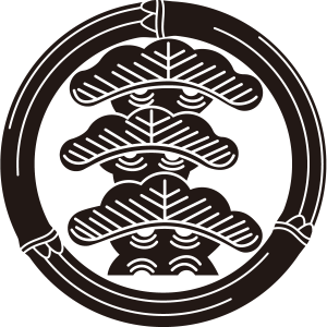 | 松紋とは、マツ科の針葉樹の高木である松の幹、枝、葉、及び松毬を紋章化した家紋。一年中青々とした葉をつける松は長寿の象徴とされ吉祥の瑞木として家紋として用いられた。また、苗字に因んで用いた氏も多い。松紋の形状、種類は極めて多いが、図案としては松を3段にした「三段階松」が多く使用されている。 |