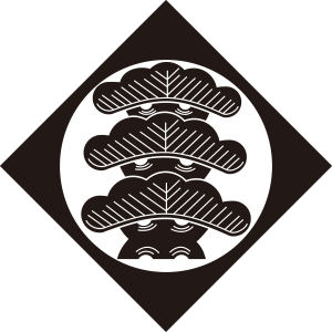 | 松紋とは、マツ科の針葉樹の高木である松の幹、枝、葉、及び松毬を紋章化した家紋。一年中青々とした葉をつける松は長寿の象徴とされ吉祥の瑞木として家紋として用いられた。また、苗字に因んで用いた氏も多い。松紋の形状、種類は極めて多いが、図案としては松を3段にした「三段階松」が多く使用されている。 |