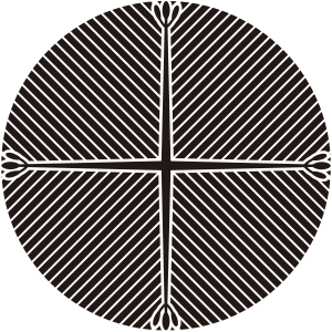 | 松紋とは、マツ科の針葉樹の高木である松の幹、枝、葉、及び松毬を紋章化した家紋。一年中青々とした葉をつける松は長寿の象徴とされ吉祥の瑞木として家紋として用いられた。また、苗字に因んで用いた氏も多い。松紋の形状、種類は極めて多いが、図案としては松を3段にした「三段階松」が多く使用されている。 |