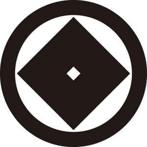 丸に隅立て一つ目紋は、『隅立て一つ目』を描いて、その周りに通常の太さの丸を描く。