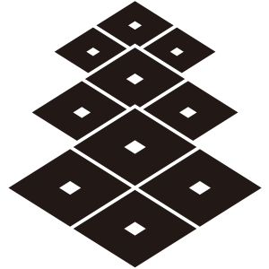 三階四つ目菱紋は、10個の『一つ目菱』を集めて、『三階菱』の形に描く。