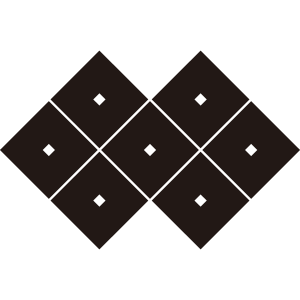 持ち合い四つ目紋は、2つの『隅立て四つ目』を横に並べて描く。