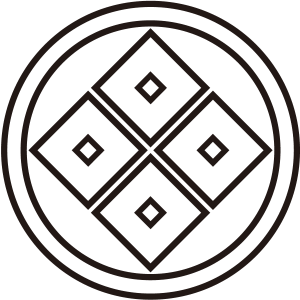 総陰丸に四つ目紋は、『丸に隅立て四つ目』を輪郭のみで描く。
