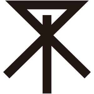 澪標紋は、「又」の文字の形をした組木の中心に支柱を添えた形を紋章化したもの。