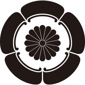 五瓜に十六葉菊紋は、『五瓜』を描いて、その中央に『十六葉菊』を据える。「五瓜に十六葉菊」