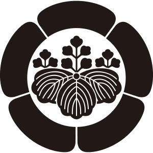 一重五瓜に五三桐紋は、木瓜紋の一種で、『一重五瓜』を描いて、その中央に『五三桐紋』を据えて描く。