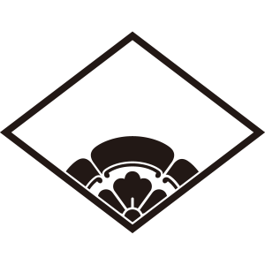 糸菱に覗き五瓜紋は、糸菱を描いて、その中に下から覗くように『五瓜に唐花』の一部を描く。