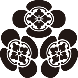 三つ木瓜紋は、3つの『木瓜紋』を頭を合わせるように描く。