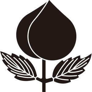 | 桃紋とは、バラ科の落葉小高木である桃の果実をモチーフとした家紋。桃は長寿を象徴する果実といわれ、また桃太郎の童話や3月3日の桃の節句など、桃は魔除けの霊験があるとされており、形の美しさと信仰的な意義で家紋となった。 |