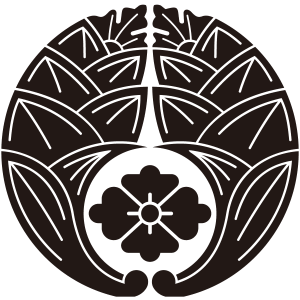 | 茗荷紋は、ショウガ科の多年草である茗荷をモチーフとした家紋。茗荷はその音が「冥加(みょうが)」に通じることから、縁起がいいとされた。冥加とは、神仏の守護のこと。このため神社や寺で茗荷紋が多く用いられている。 茗荷紋は『杏葉紋』と酷似しており混同されることが多い。もとは杏葉紋に縁起の良い茗荷を当てて使用したといわれる。 |