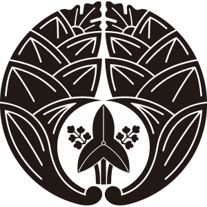 | 茗荷紋は、ショウガ科の多年草である茗荷をモチーフとした家紋。茗荷はその音が「冥加(みょうが)」に通じることから、縁起がいいとされた。冥加とは、神仏の守護のこと。このため神社や寺で茗荷紋が多く用いられている。 茗荷紋は『杏葉紋』と酷似しており混同されることが多い。もとは杏葉紋に縁起の良い茗荷を当てて使用したといわれる。 |