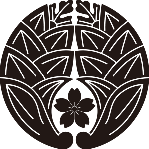抱き茗荷に山桜紋は、『抱き茗荷』を描いて、下部の隙間に『山桜紋』を据える。