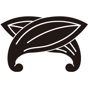 二葉違い茗荷紋は、二葉の『一つ茗荷』を2つ斜めに重なるように互い違いに描く。