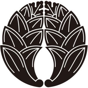 | 茗荷紋は、ショウガ科の多年草である茗荷をモチーフとした家紋。茗荷はその音が「冥加(みょうが)」に通じることから、縁起がいいとされた。冥加とは、神仏の守護のこと。このため神社や寺で茗荷紋が多く用いられている。 茗荷紋は『杏葉紋』と酷似しており混同されることが多い。もとは杏葉紋に縁起の良い茗荷を当てて使用したといわれる。 |
