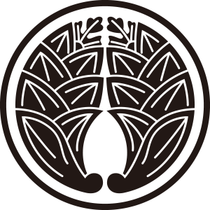 | 茗荷紋は、ショウガ科の多年草である茗荷をモチーフとした家紋。茗荷はその音が「冥加(みょうが)」に通じることから、縁起がいいとされた。冥加とは、神仏の守護のこと。このため神社や寺で茗荷紋が多く用いられている。 茗荷紋は『杏葉紋』と酷似しており混同されることが多い。もとは杏葉紋に縁起の良い茗荷を当てて使用したといわれる。 |