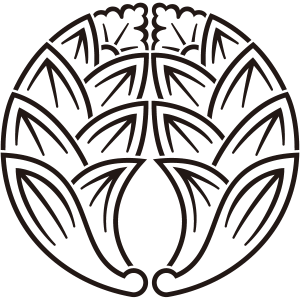 | 茗荷紋は、ショウガ科の多年草である茗荷をモチーフとした家紋。茗荷はその音が「冥加(みょうが)」に通じることから、縁起がいいとされた。冥加とは、神仏の守護のこと。このため神社や寺で茗荷紋が多く用いられている。 茗荷紋は『杏葉紋』と酷似しており混同されることが多い。もとは杏葉紋に縁起の良い茗荷を当てて使用したといわれる。 |