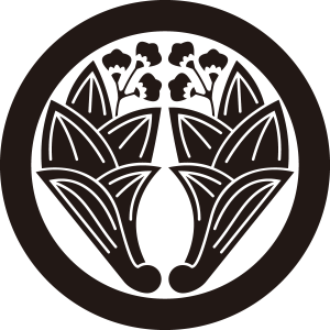 | 茗荷紋は、ショウガ科の多年草である茗荷をモチーフとした家紋。茗荷はその音が「冥加(みょうが)」に通じることから、縁起がいいとされた。冥加とは、神仏の守護のこと。このため神社や寺で茗荷紋が多く用いられている。 茗荷紋は『杏葉紋』と酷似しており混同されることが多い。もとは杏葉紋に縁起の良い茗荷を当てて使用したといわれる。 |