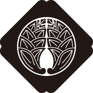 | 茗荷紋は、ショウガ科の多年草である茗荷をモチーフとした家紋。茗荷はその音が「冥加(みょうが)」に通じることから、縁起がいいとされた。冥加とは、神仏の守護のこと。このため神社や寺で茗荷紋が多く用いられている。 茗荷紋は『杏葉紋』と酷似しており混同されることが多い。もとは杏葉紋に縁起の良い茗荷を当てて使用したといわれる。 |