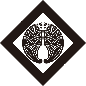 | 茗荷紋は、ショウガ科の多年草である茗荷をモチーフとした家紋。茗荷はその音が「冥加(みょうが)」に通じることから、縁起がいいとされた。冥加とは、神仏の守護のこと。このため神社や寺で茗荷紋が多く用いられている。 茗荷紋は『杏葉紋』と酷似しており混同されることが多い。もとは杏葉紋に縁起の良い茗荷を当てて使用したといわれる。 |