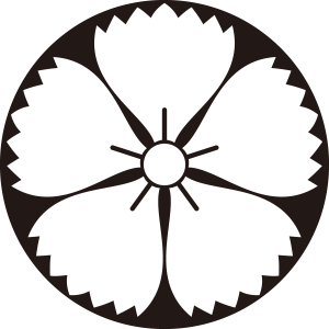 | 撫子紋は撫子の花をモチーフとした家紋。撫子はナデシコ科の多年草で「万葉集」「枕草子」に登場するほど昔からその形の美しさ、可憐さで人々を魅了してきた。家紋には花の形をそのまま模した図案が多く、その美しさから家紋としてしようされるようになった。美濃の斎藤氏の代表的な家紋として有名。 |