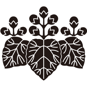 茄子桐紋は、3枚の茄子の葉と、5つの実を中央に3つの実を左右に配し、『五三桐』に見立てて描く。