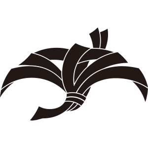 | 熨斗は「熨斗鮑」の略で、アワビの肉を薄く削ぎ引き伸ばして乾燥させたもの。儀式の肴や慶事の進物として用いられた。現代では簡略化され黄色い紙片を六角形の紙で包んだものが用いられている。縁起物として瑞祥的な意義で家紋となった。 |