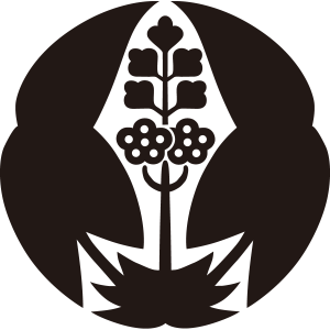 木下沢瀉紋は、通常は丸に近い形の『抱き沢瀉』の葉と茎の部分を簡略化してシルエットのみで描く。豊後日出藩木下氏の家紋の一つ。