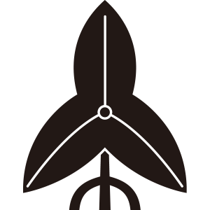 立ち葉沢瀉紋は、1枚の沢瀉の葉を、三又に分かれた茎で立たせて描く。