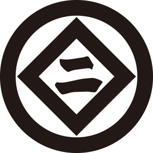 | 折敷紋とは、神事や食事に用いられた角盆をモチーフとした家紋。上古の時代、木の葉を折り敷いて食器の代用としていたことから「折敷(おしき)」と呼ばれる。後に檜の薄い板を折り曲げて角盆として食物を乗せる台となった。折敷紋はこれを上から見た形を象ったもの。基本的に外殻とし、中に他の家紋を描くことが多い。伊予国大三島の大山祇神社(三島神社の総本社)の神紋として「折敷に三の字」が用いられ、三島明神を信仰する越智氏一族の多くが家紋として使用するようになった。越智氏一族の戦国大名河野氏や一柳氏、稲葉氏、久留島氏などが使用している。 |