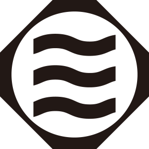 折敷鉄砲角に揺れ三文字紋は、『折敷鉄砲角』の中に、波打つように揺れた「三」の文字を据える。