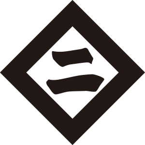 | 折敷紋とは、神事や食事に用いられた角盆をモチーフとした家紋。上古の時代、木の葉を折り敷いて食器の代用としていたことから「折敷(おしき)」と呼ばれる。後に檜の薄い板を折り曲げて角盆として食物を乗せる台となった。折敷紋はこれを上から見た形を象ったもの。基本的に外殻とし、中に他の家紋を描くことが多い。伊予国大三島の大山祇神社(三島神社の総本社)の神紋として「折敷に三の字」が用いられ、三島明神を信仰する越智氏一族の多くが家紋として使用するようになった。越智氏一族の戦国大名河野氏や一柳氏、稲葉氏、久留島氏などが使用している。 |