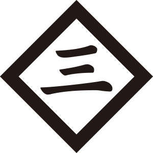 傍折敷に三文字紋は、『傍折敷』の中に、角字の「三」の文字を据える。