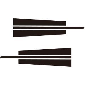 入れ違い二本扇は、横向きの2つの閉じた状態の扇を入れ違いに縦に並べて描く。