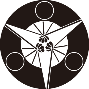 三つ月の丸扇紋は、3枚の月の丸が入った『扇に月丸』を、尻を合わせるように寄せて描く。