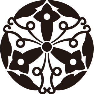| 連翹(れんぎょう)はモクセイ科レンギョウ属の総称で、春に華やかで美しい黄色い花をつける。丁子唐草文様から発生した家紋と考えられ、尚美的意義により家紋となった。連翹紋の使用家が公家の正親町三条家、姉小路家、武家の千葉氏、戸田氏の4家で、ともに藤原北家公季流なため藤原氏公季流の代表紋といえる。 |
