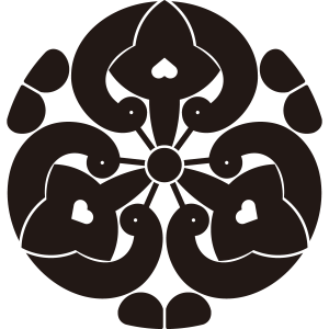 | 連翹(れんぎょう)はモクセイ科レンギョウ属の総称で、春に華やかで美しい黄色い花をつける。丁子唐草文様から発生した家紋と考えられ、尚美的意義により家紋となった。連翹紋の使用家が公家の正親町三条家、姉小路家、武家の千葉氏、戸田氏の4家で、ともに藤原北家公季流なため藤原氏公季流の代表紋といえる。 |