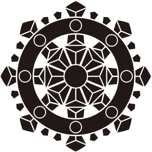 | 輪宝とは仏教寺院、ヒンドゥー寺院のシンボル。諸説あるが元は武器とも車輪とも曼荼羅ともされる。信仰的な意義により家紋となった。 |
