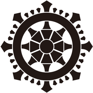 | 輪宝とは仏教寺院、ヒンドゥー寺院のシンボル。諸説あるが元は武器とも車輪とも曼荼羅ともされる。信仰的な意義により家紋となった。 |