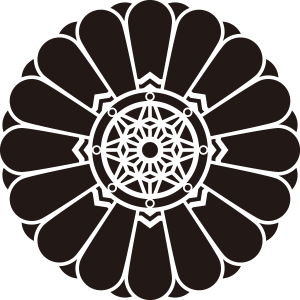 天台宗輪宝紋は、十六葉八重菊と輪宝を組み合わせた輪宝紋。天台宗総本山延暦寺の寺紋。