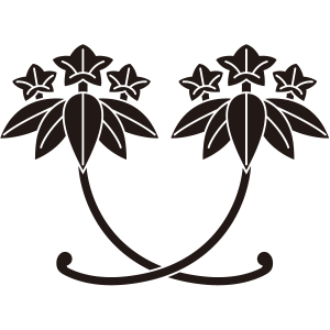 違い竜胆紋は、2つの『笹竜胆』の下に蔓を長く伸ばして交差させて描く。