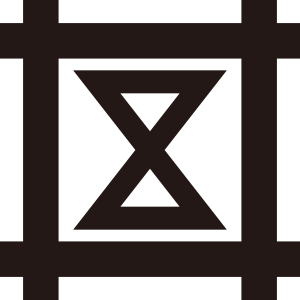 隅切り鉄砲角に中陰輪鼓紋は、『中陰輪鼓』を中央に描いて、その周りを『平井筒』で囲う。